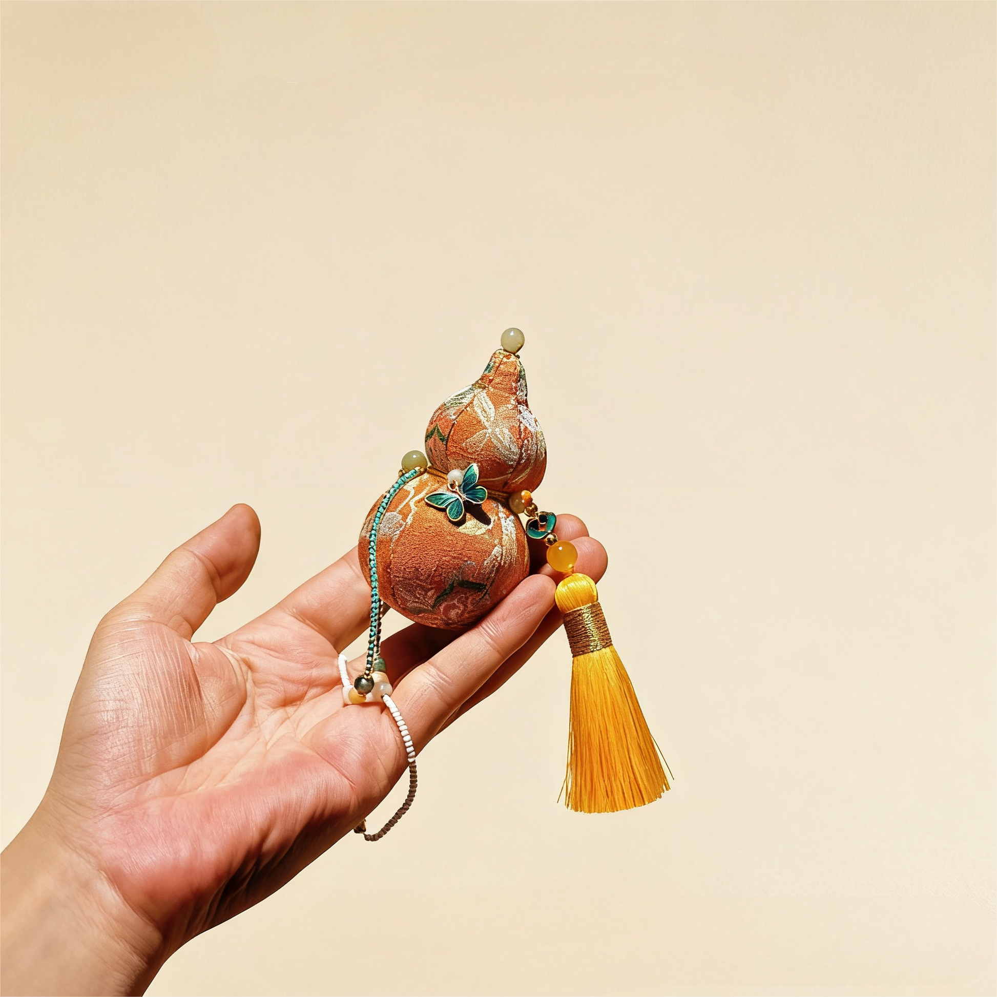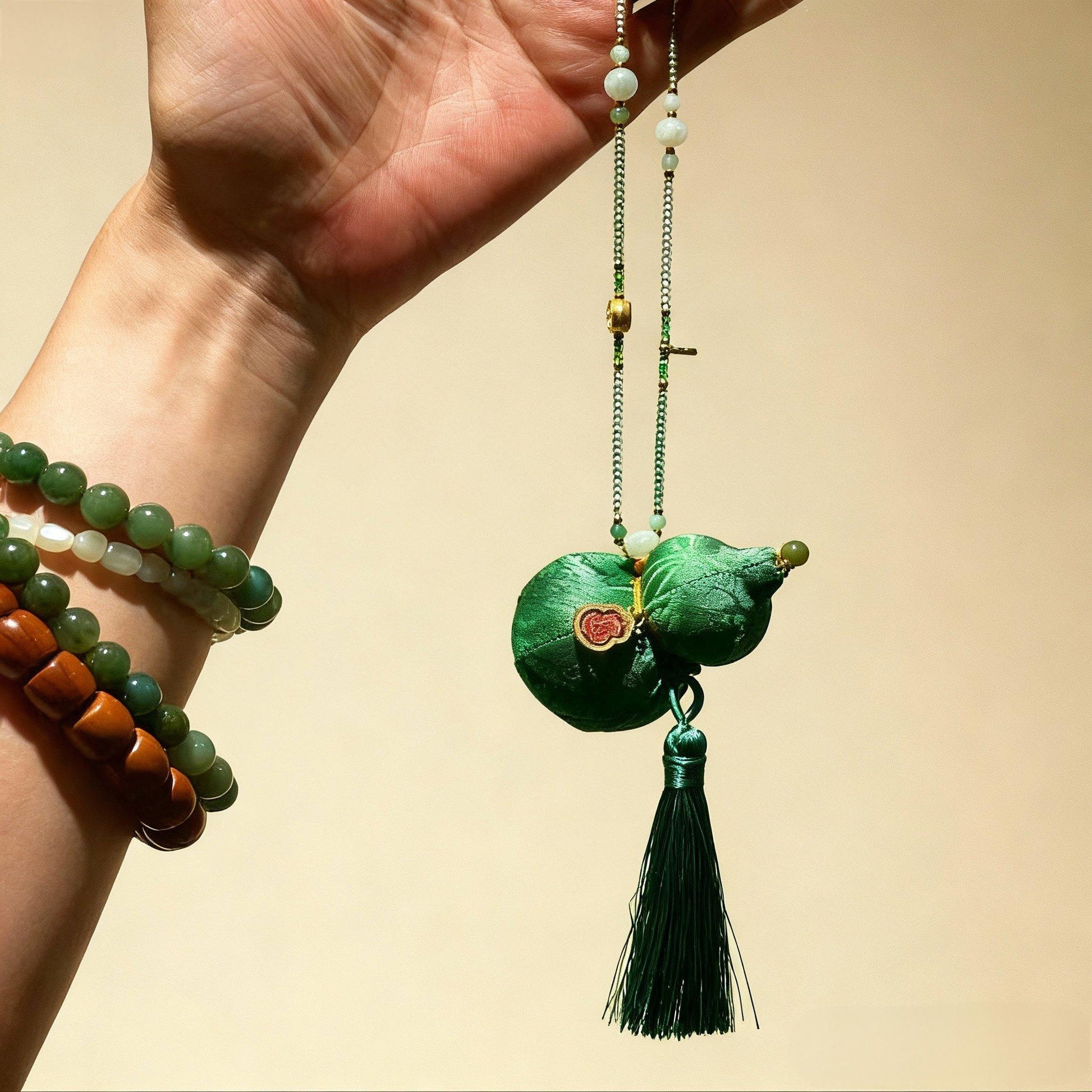 In Chinese culture, the gourd (Hulu) echoes“福禄”—fortune and prosperity—embodying auspicious wholeness. This beautiful Hulu (Calabash) Fragrance Pouch is more than just a scented sachet—it's an oriental lucky charm believed to ward off negative energy and bring lasting fortune.